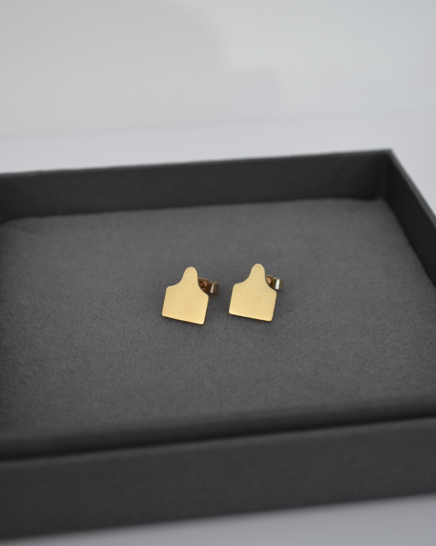 Cow Ear Tag Earrings in 9ct Yellow Gold