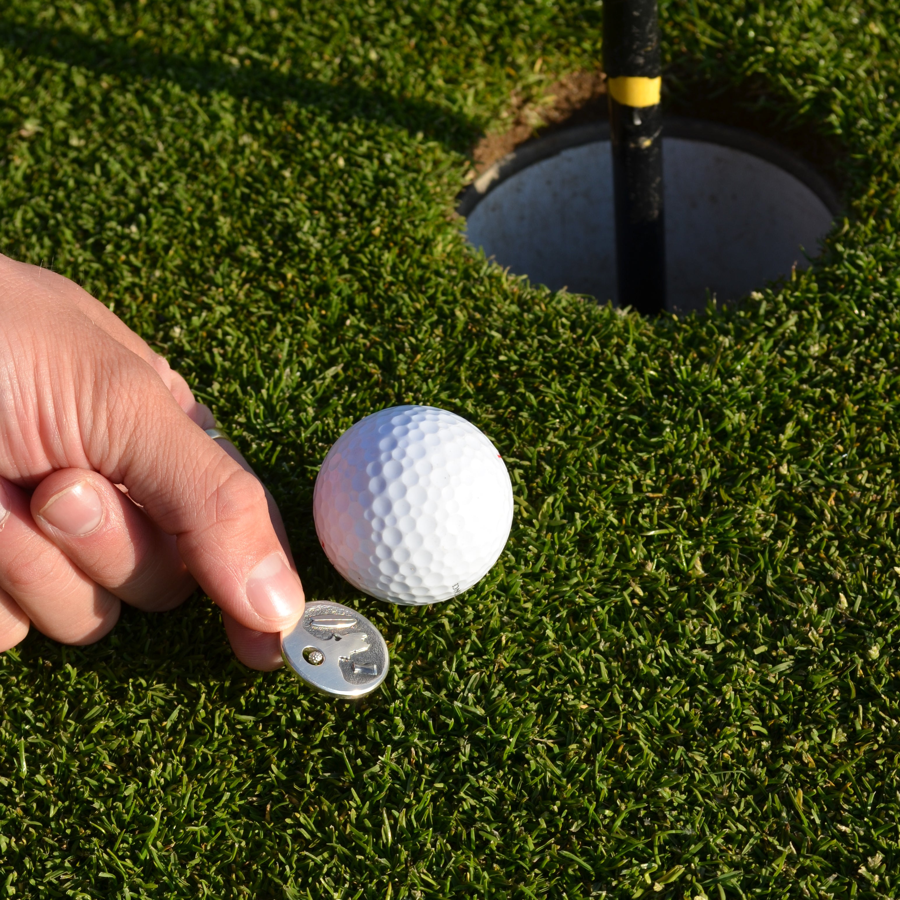 The golf marker measures approximately 25mm in diameter and 2.5mm in thickness.