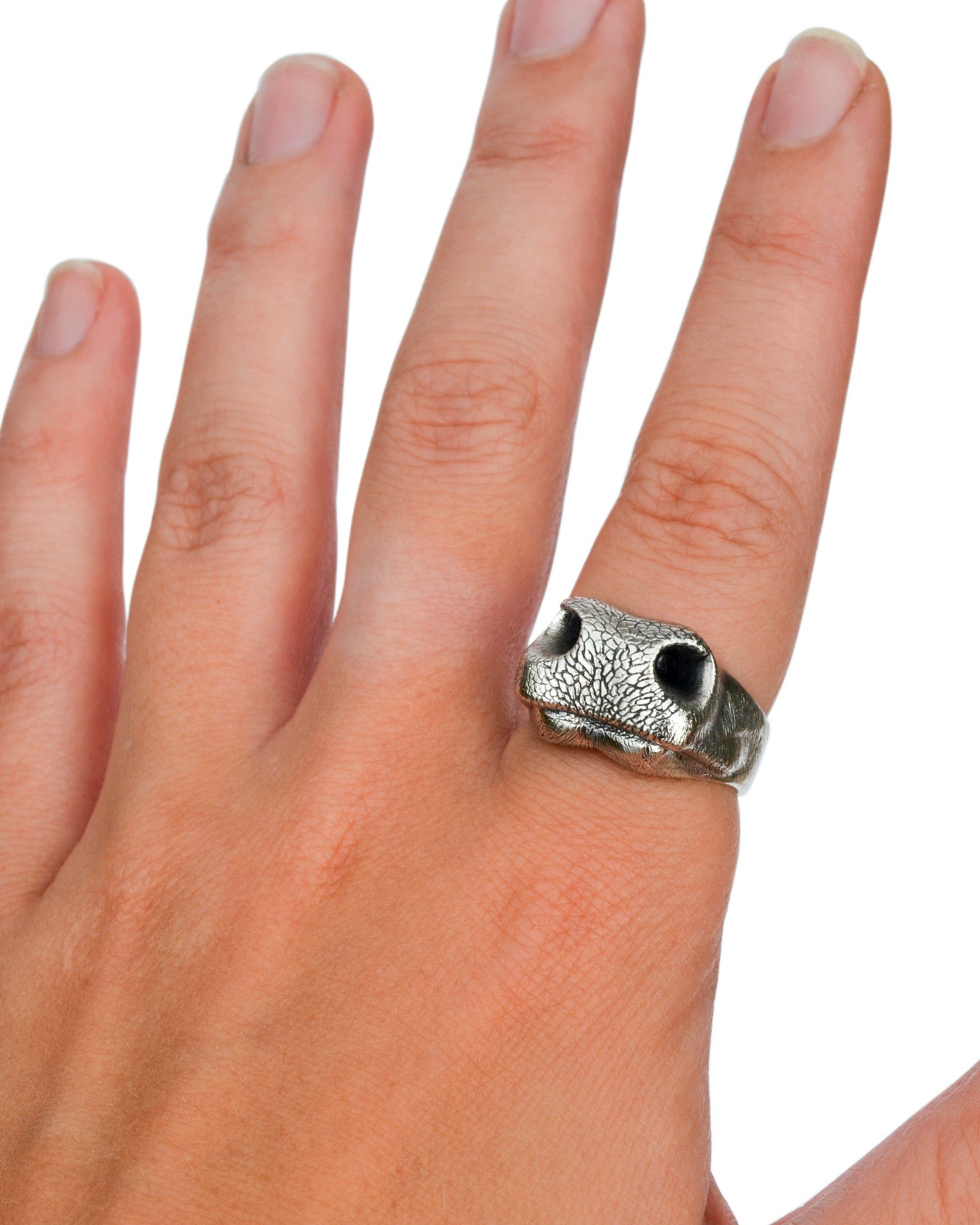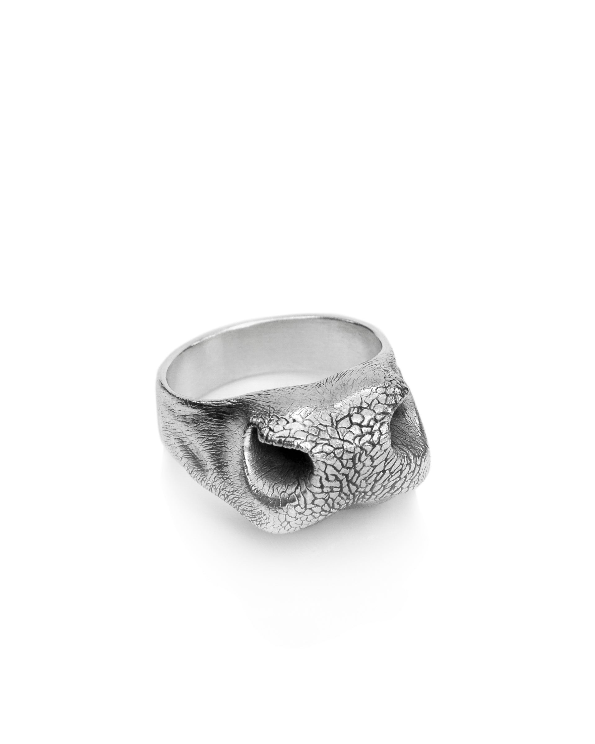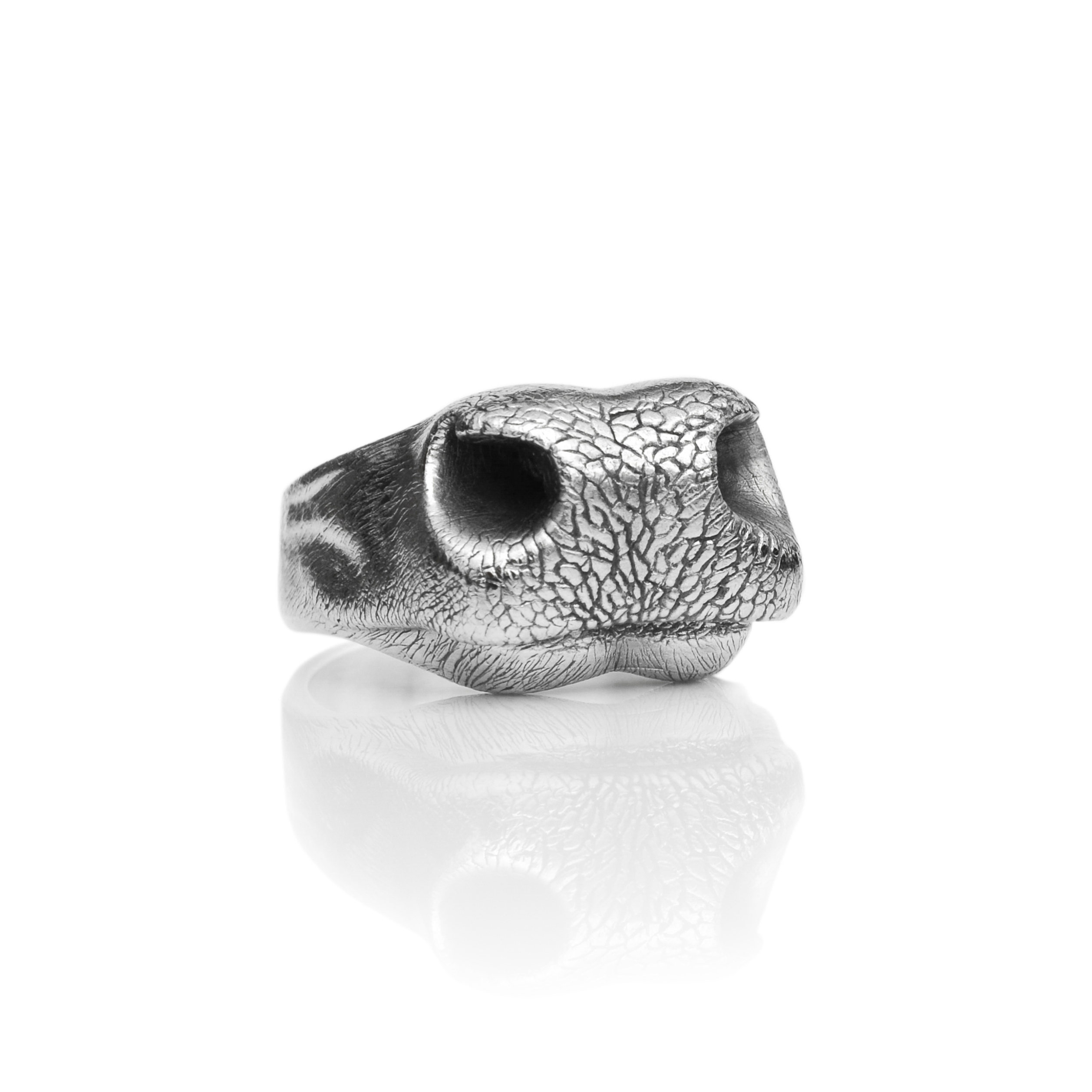 This ring has been hand carved by Kathryn from a block of wax to create the nose shape and then cast in sterling silver. It is then sent to Edinburgh’s Assay Office where it is quality checked and engraved with Kathryn’s hallmark.