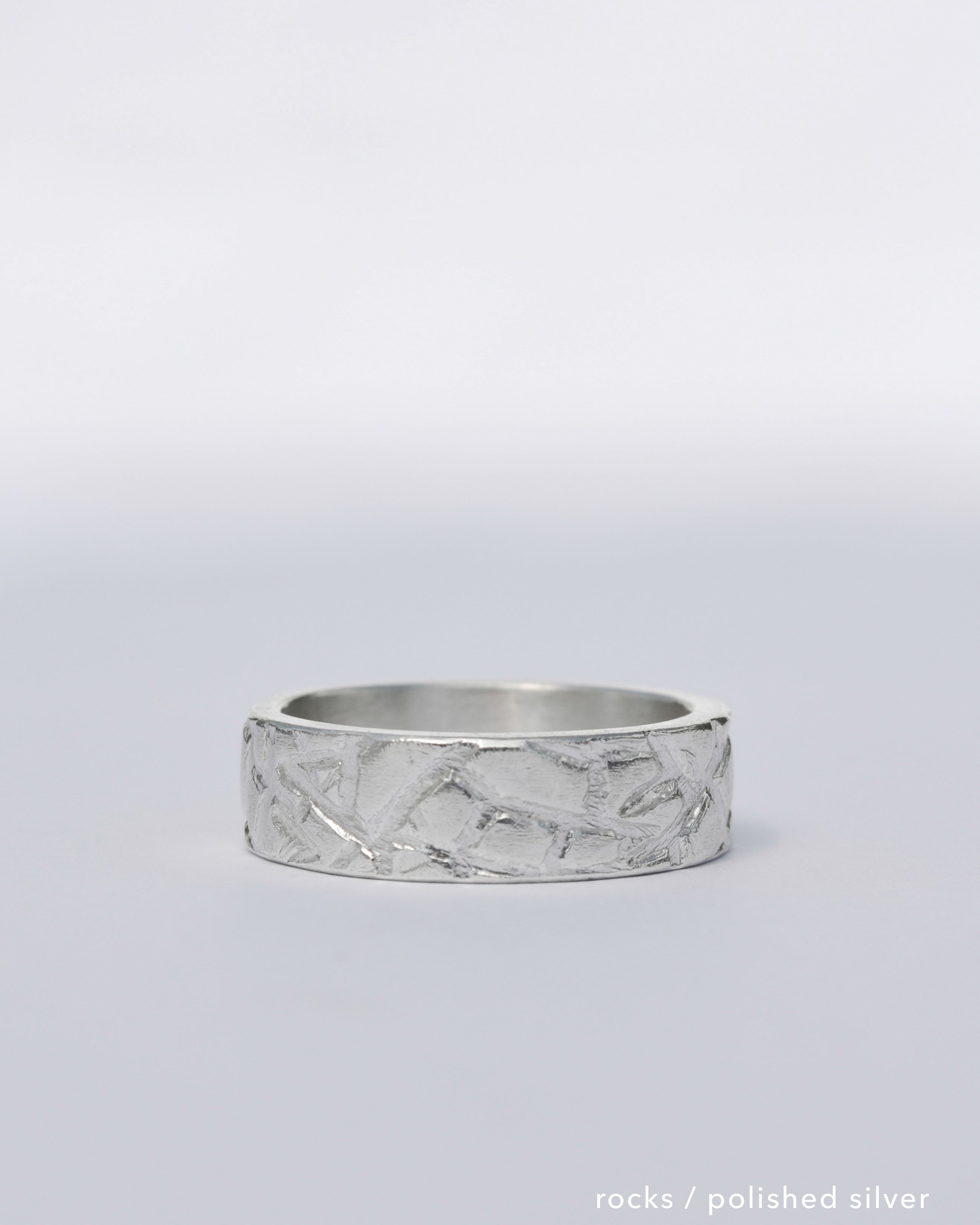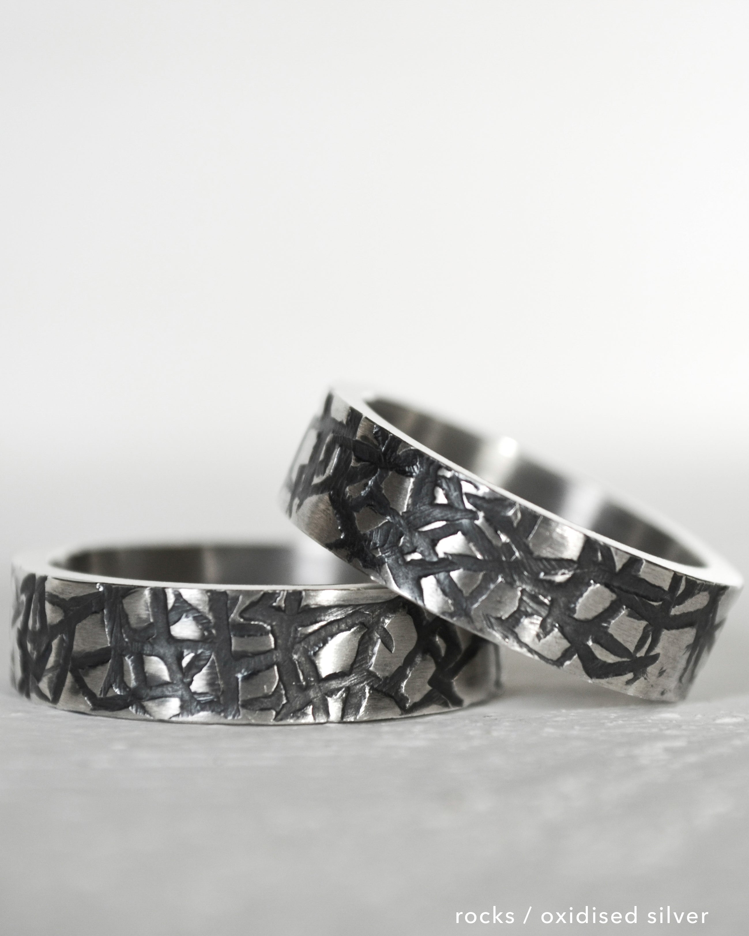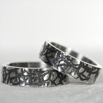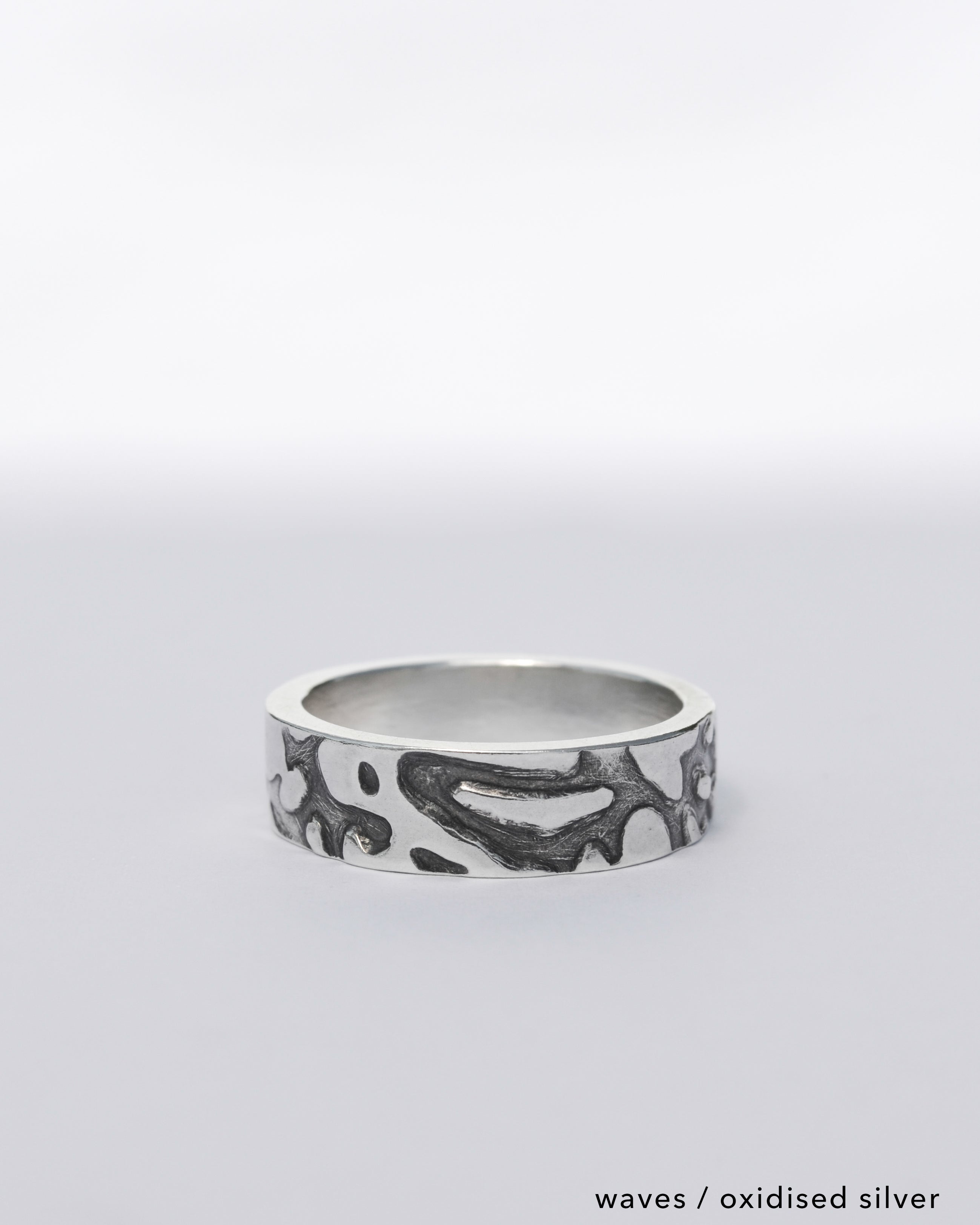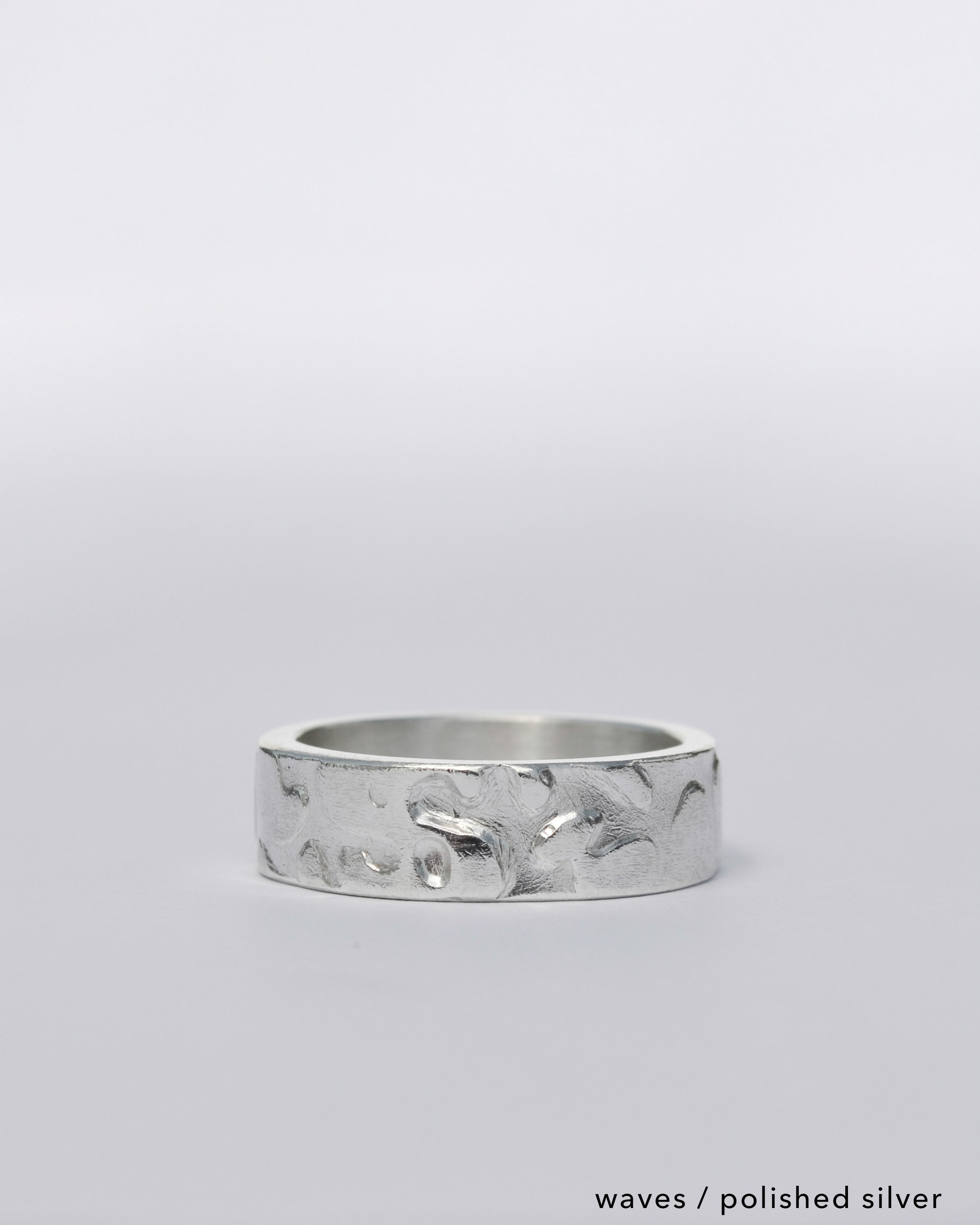 The North Coast Ring comes in a choice of two different textures. The first texture is the ‘Rocks’ texture. It is sharp and angular which represents the unique, rocky, Causeway Coastline. The second texture is the ‘Waves’ texture. It is more bubbly & rounded representing the chopping waves along the North Coast of Northern Ireland.