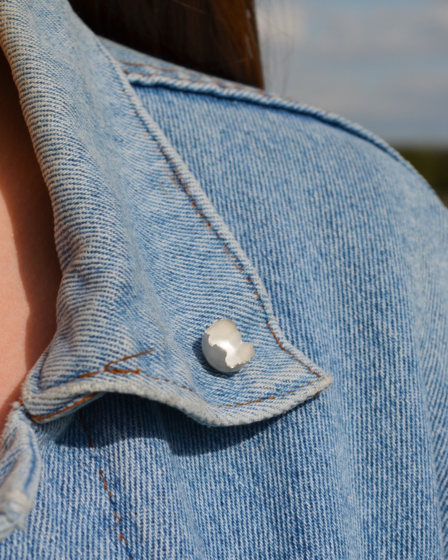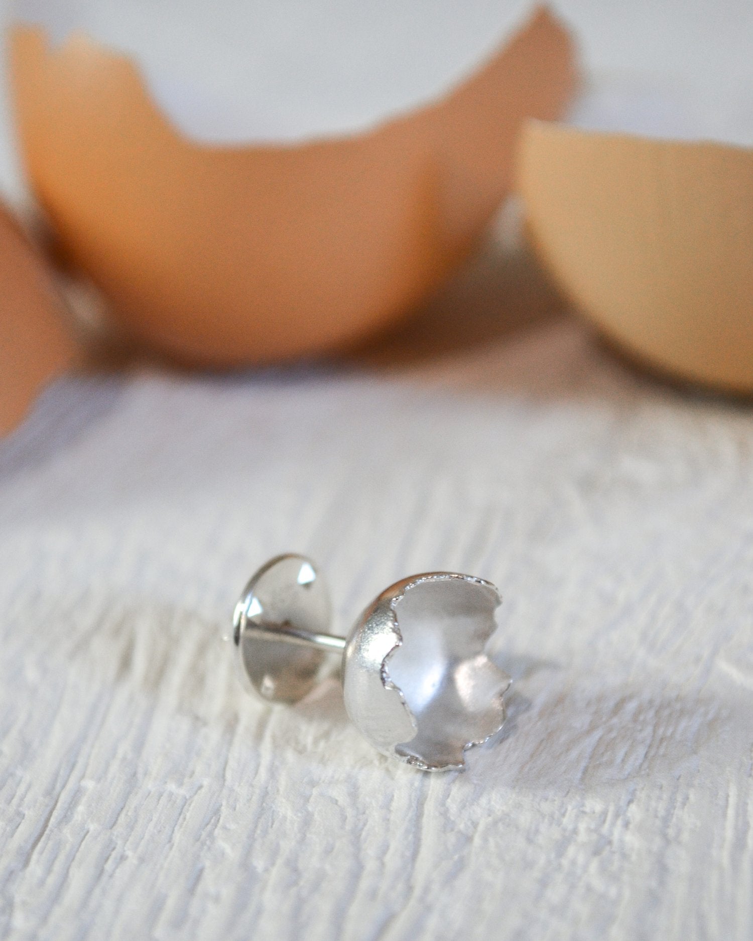 The Poached Pin is made of sterling silver with a satin finish. It makes the perfect accessory for those lighter jackets and coats. Each piece is handmade in sterling silver and is sent to Edinburgh's Assay Office where it is checked and engraved with my own hallmark.