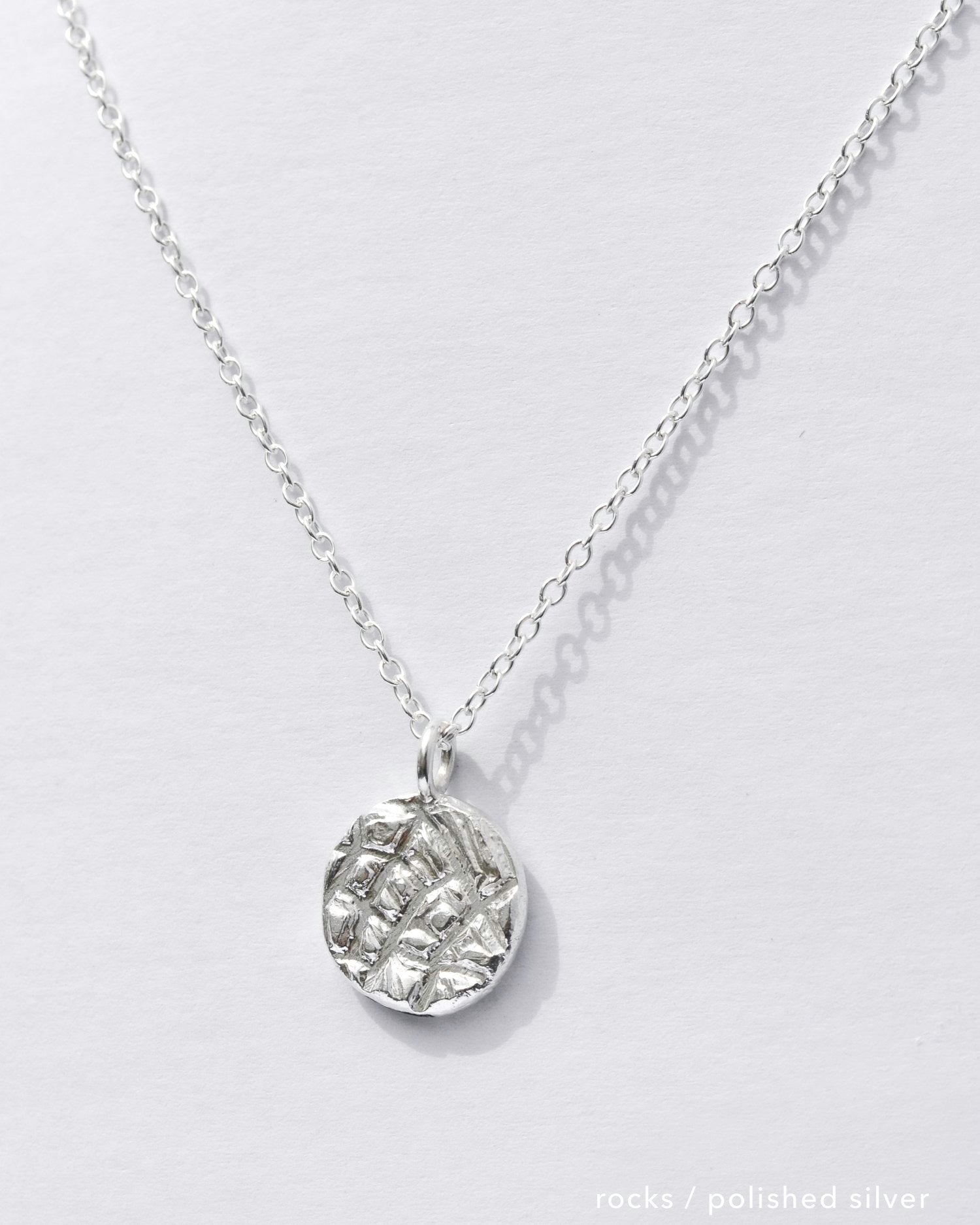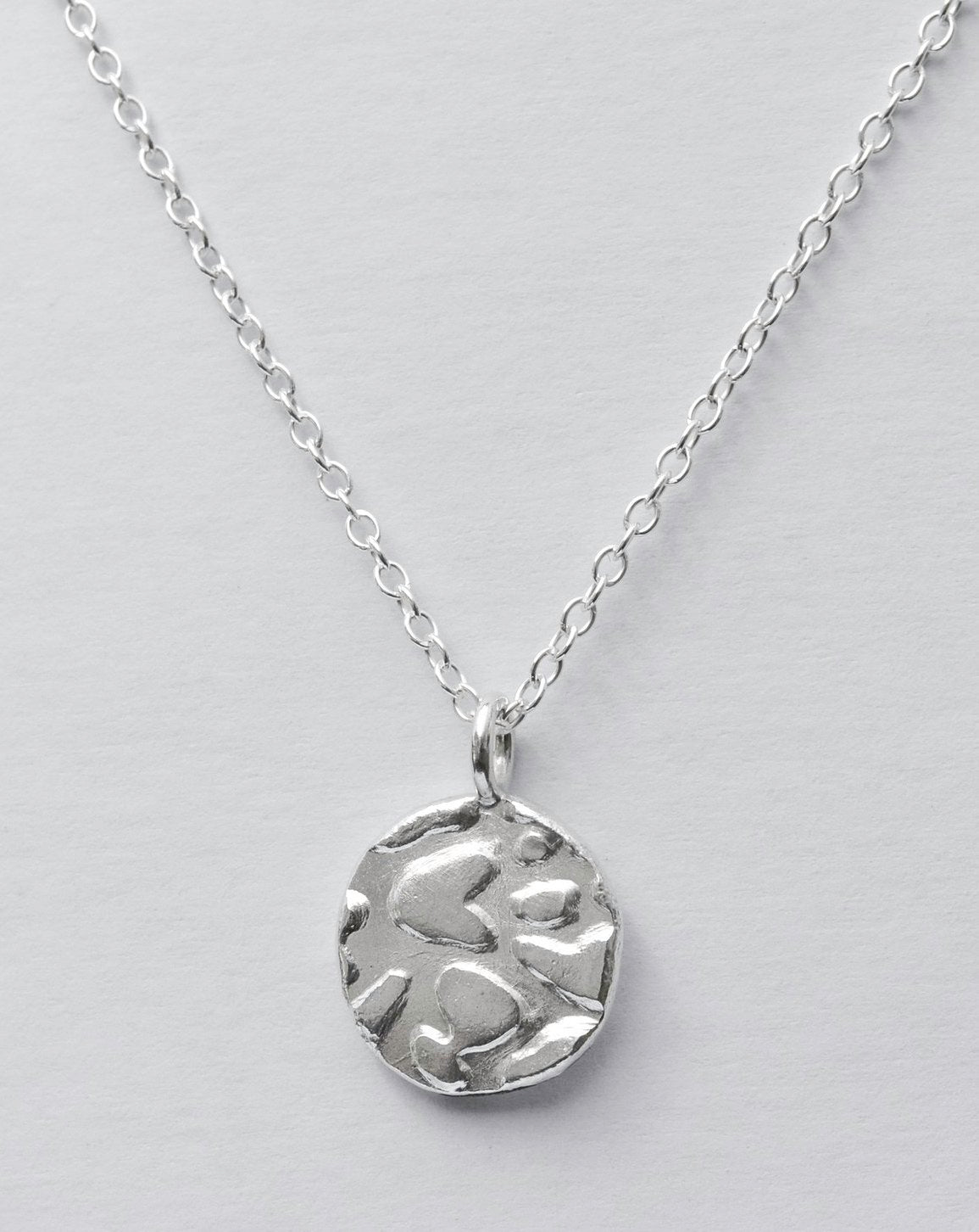 The North Coast Pendant Necklace is double sided consisting of two different textures. The first texture is the ‘Rocks’ texture. It is sharp and angular which represents the unique, rocky, Causeway Coastline. The second texture is the ‘Waves’ texture. It is more bubbly & rounded representing the chopping waves along the North Coast of Northern Ireland.