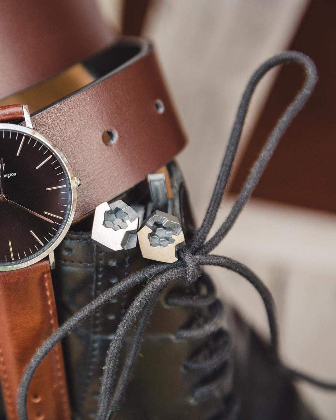 Each piece has tiny Causeway stones underneath the surface on the front AND on the back, making the piece intriguing from every angle. These would make the perfect gift for a groom or father of the groom.